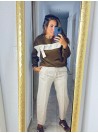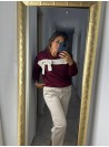 Sudadera lazos, franja. Talla única (tallan de la S a la XL), contornos 110 cm y largo 62 cm. Tejido muy bueno, no es muy gordo.